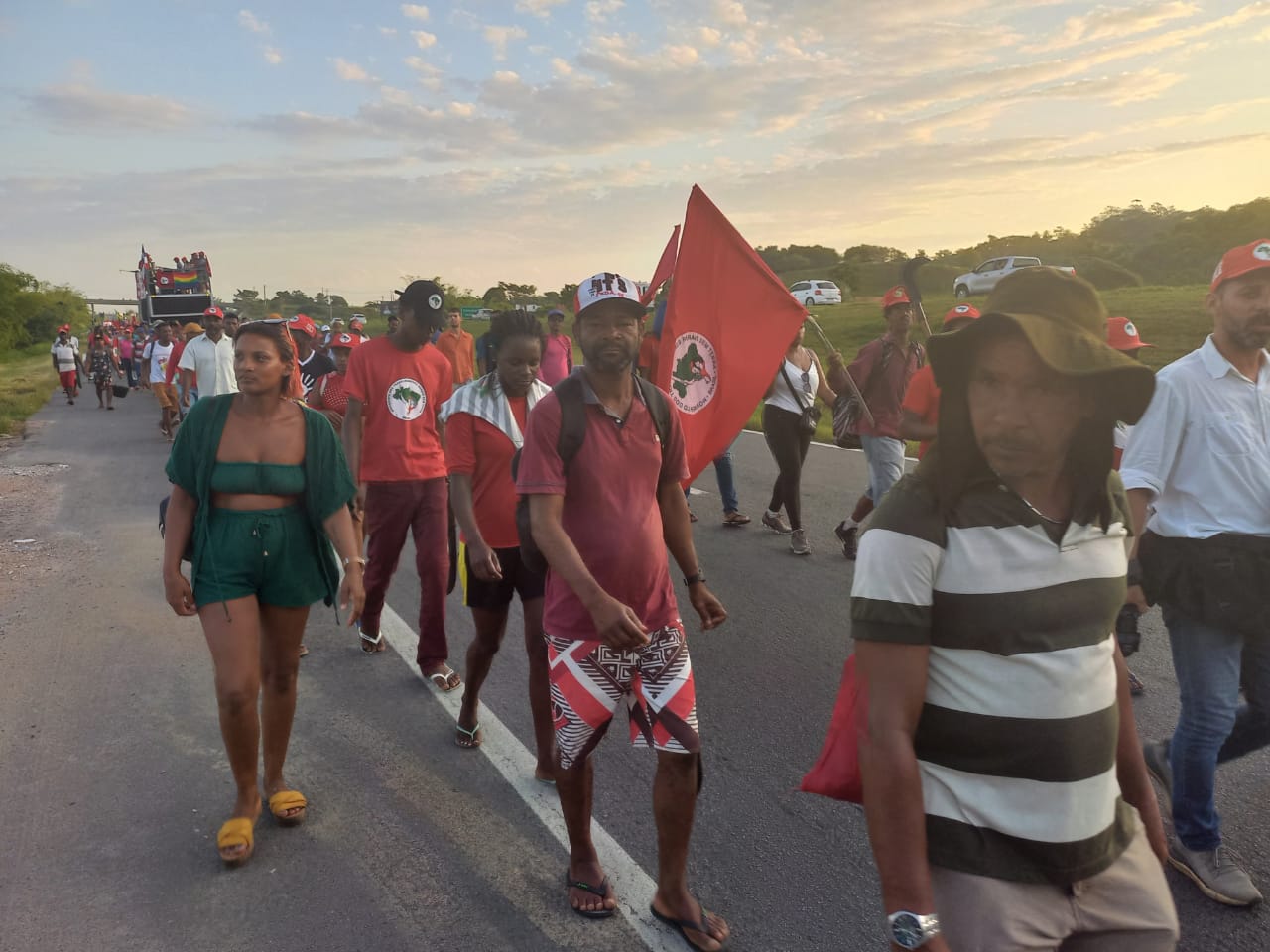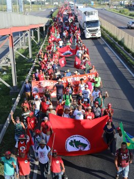 Os Sem Terra estão marchando, desde o dia 11/04, onde saíram de Feira de Santana e estão percorrendo cerca de 110 km, no objetivo de chegar a capital baiana. No trajeto, a marcha vem apresentando para a sociedade sua bandeira de luta e dialogando com a população das cidades sobre a necessidade e importância da Reforma Agraria e denunciando o aumento da violência no campo. São cerca de 3 mil Trabalhadoras/es Sem Terra de toda a Bahia que marcham até Salvador.